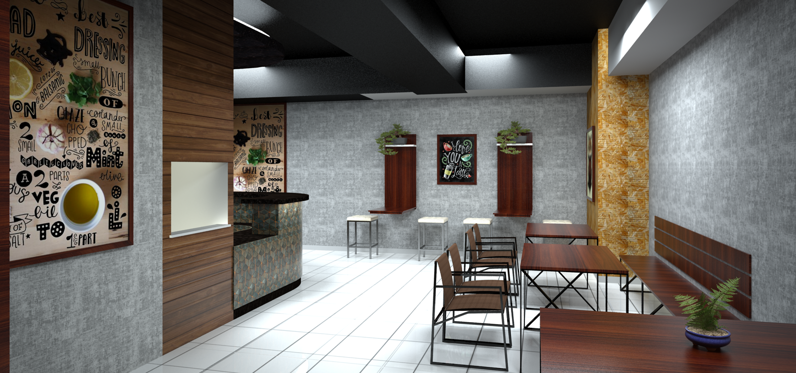Ánh sáng, màu sắc và vật liệu được sắp đặt tinh tế, biến quán thành một phòng trưng bày đầy cảm hứng.