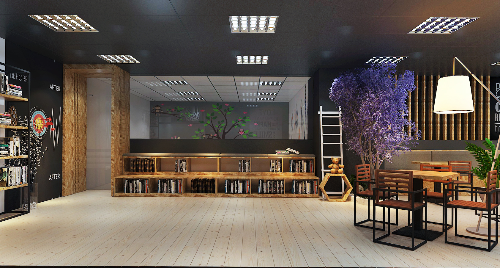 Mỗi góc nhỏ trong quán là một không gian kiến trúc được thỏa sức trình diễn những ý tưởng thiết kế độc đáo và nghệ thuật.